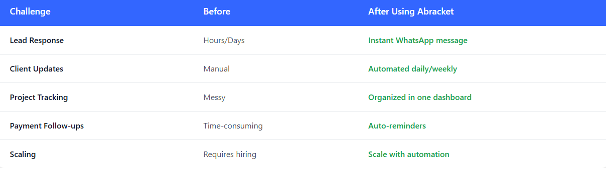 Join thousands of agencies and freelancers who are automating their workflows and scaling their businesses with Abracket